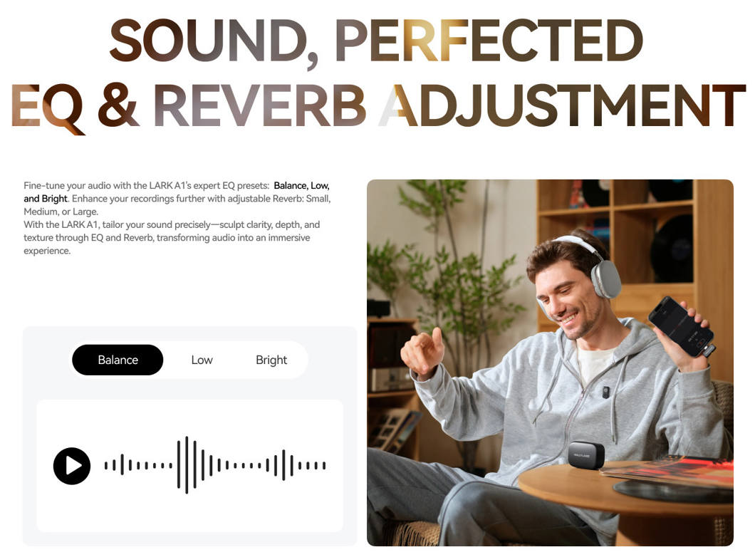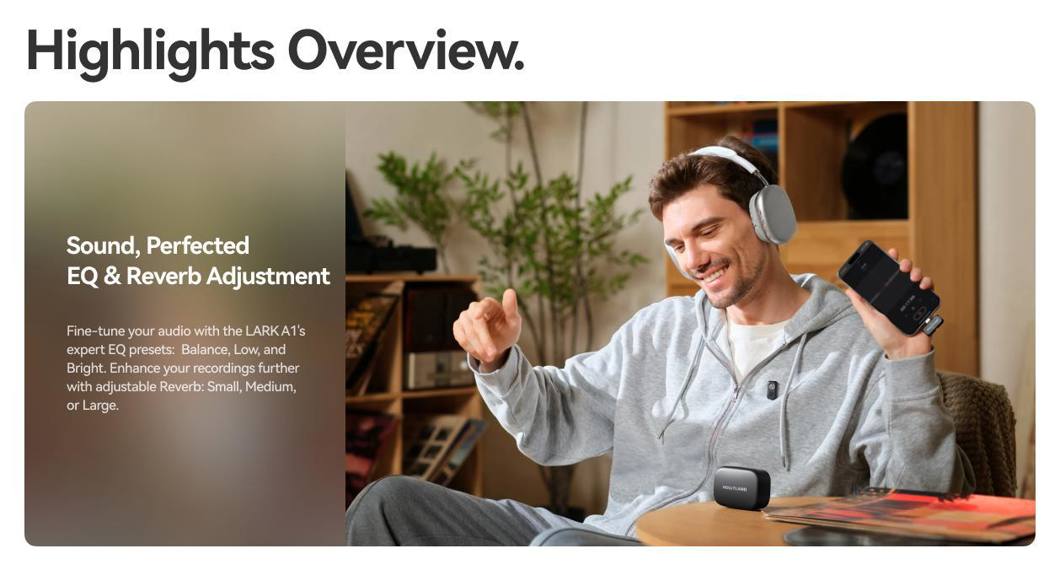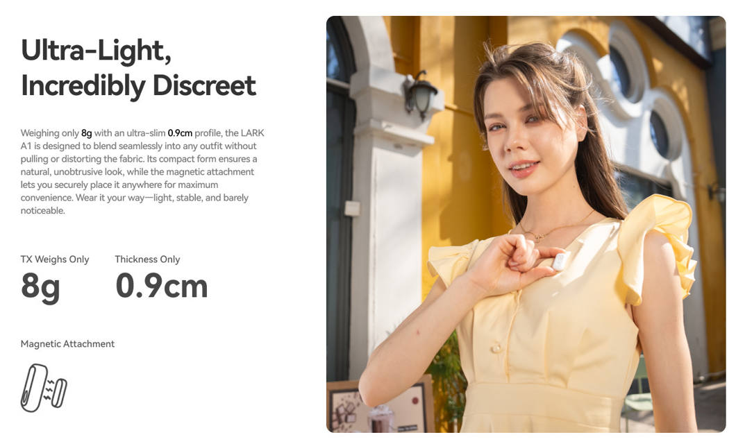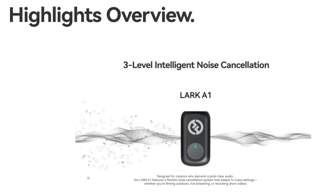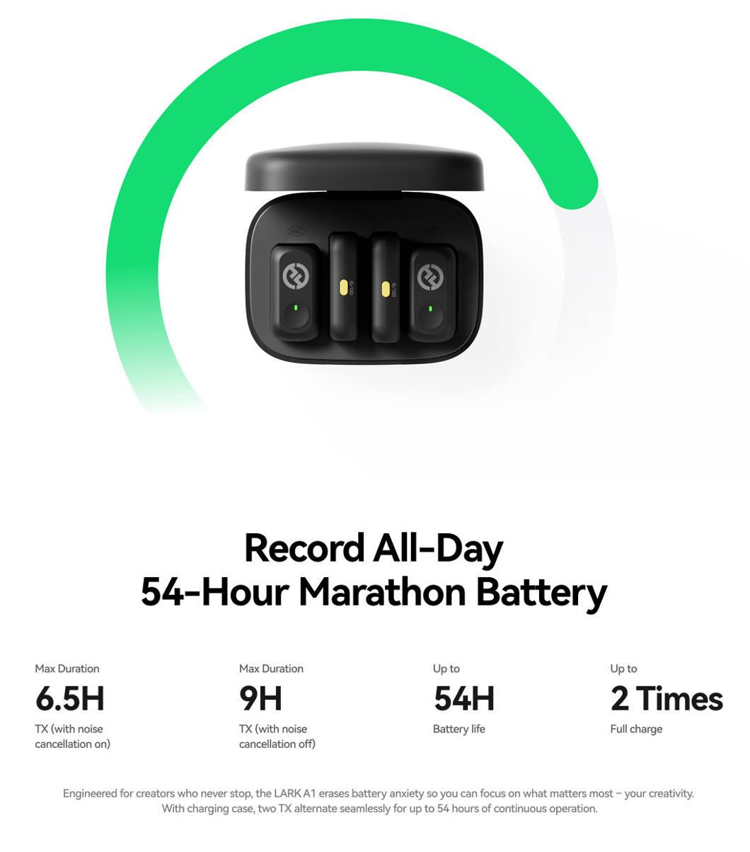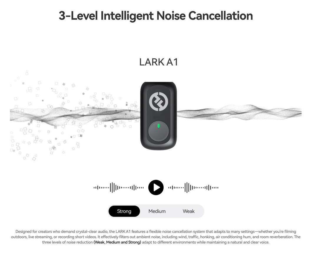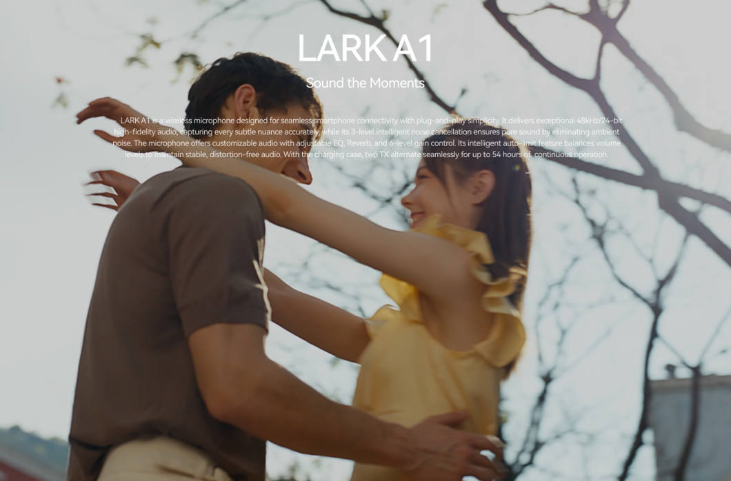 Capture every word with confidence. The LARK A1 Combo is a stylish and ultra-portable wireless microphone system designed for smartphone creators. Enjoy instant connectivity, clean voice recording, and intelligent noise reduction that helps your audio stand out. Lightweight transmitters and a compact charging case make it easy to record great sound wherever your content takes you.