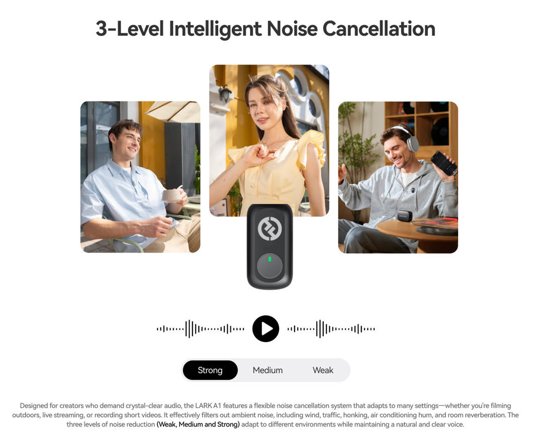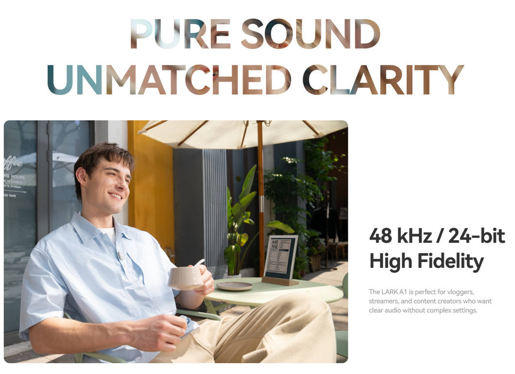 Record clear, professional audio wherever your creativity takes you. The LARK A1 Combo delivers crisp wireless sound for vlogs, interviews, and livestreams with effortless plug-and-play setup. Ultra-light transmitters clip discreetly to clothing while smart noise reduction keeps your voice front and center. The sleek charging case keeps everything protected, powered, and ready to capture your next story.