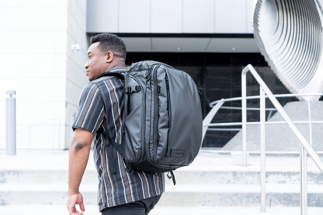 Transit Travel Backpack, skonštruovaný z materiálov odolných voči poveternostným vplyvom a robustných zipsov, ponúka elegantný exteriér, ktorý vydrží aj drsné cestovanie. Batoh je vybavený polstrovanými, tvarovanými ramennými popruhmi, priedušným chrbtovým panelom a odnímateľným hrudným pásom. Ramenné popruhy sa dajú v čase nepoužívania odložiť, čím sa dosiahne čistejší profil pri zasúvaní do horných priehradiek alebo spárovaní s pojazdnou batožinou.